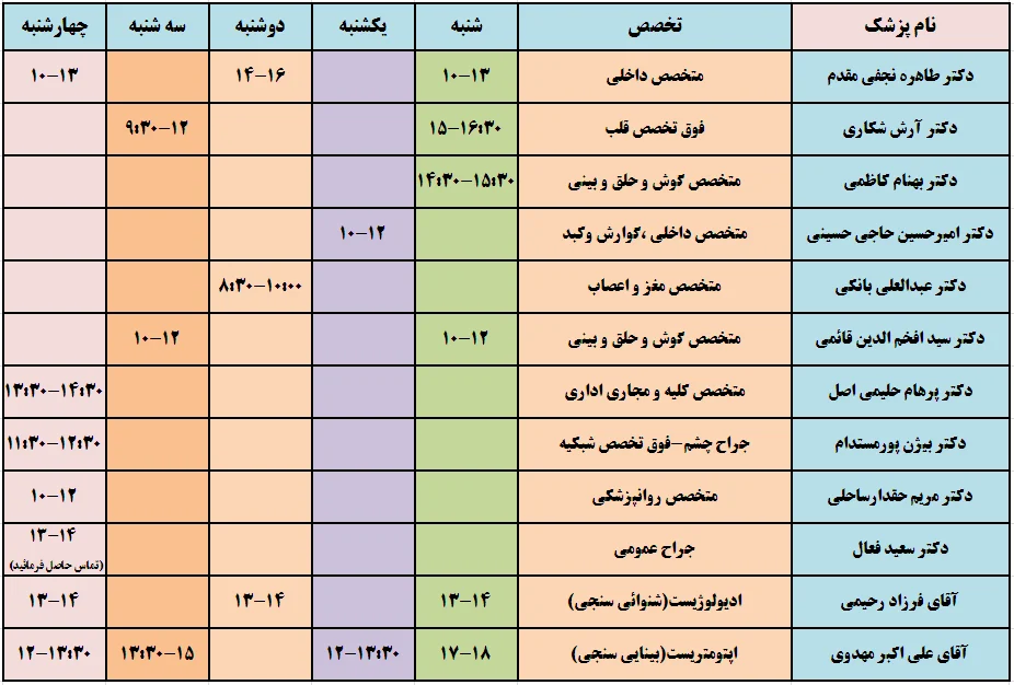 ساعات کاری شنبه تا پنج شنبه ساعت 8:00 الی 20:30